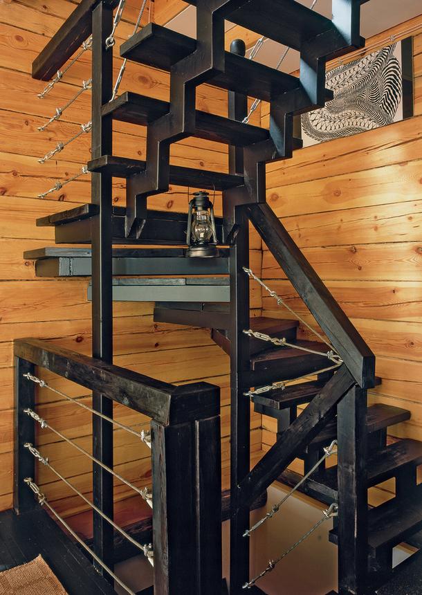 На стенах черной лестницы расположен небольшой домашний музей: на стенах проемов висят семейные фотографии, рисунки с архитектурными формами 3 поколений Тимофея, ведь он уже давно дедушка взрослого внука.