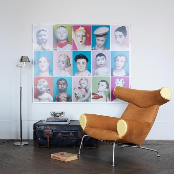 В гостиную декораторы решили поставить хозяйский антикварный чемодан, с которым тот не расстается вот уже много лет.