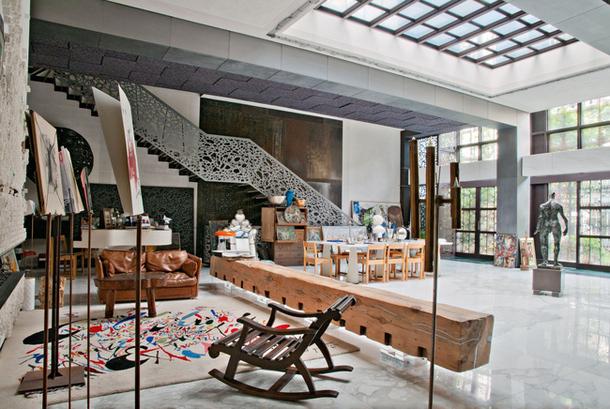 Жерар Депардье купил в Париже здание бывшего театра, чтобы устроить там дом-ателье. Так особняк «Шамбон» стал местом, которое друзья по цеху называют домом великого барахольщика. Такой смешное прозвище жилище получила из-за пристрастия хозяина к многочисленным вещам, которые тот привозит тоннами. Так что интерьеру с стиле минимализм приходится не сладко: вместить все и при этом не потерять лицо, почти невозможно, но Депардье роль Плюшкина очень нравится, так что приходится стенам быть "резиновыми".