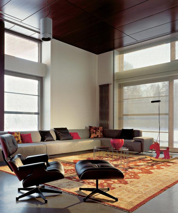 Из столовой открывается обзор на гостиную. Ковер в ней был сделан на заказ в мастерской самого Марка Патлиса.