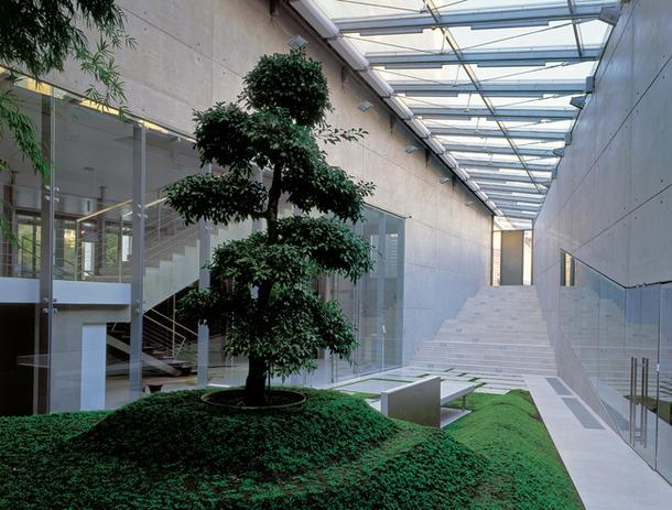 Войдя в дом, гость оказывается возле гигантской лестницы, которая ведет вниз дома. В зимнем саду есть газон, бонсай и бамбуковая роща. Даже не верится, что такая красота расположена под землей, так как только из подземной парковки можно попасть в дом.