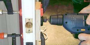 Само сверление производится с двух сторон. То есть сначала с одной стороны, на глубину немногим больше середины дверного полотна. Затем, таким же образом, с другой стороны. Такой способ сверления применяется по двум причинам: