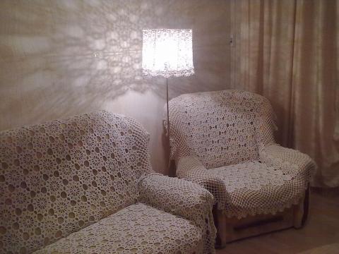 А для интерьера гостиной в стиле шебби-шик как нельзя кстати будет покрывало из белых ниток, связанное крючком. Выглядит оно очень нежно и воздушно.