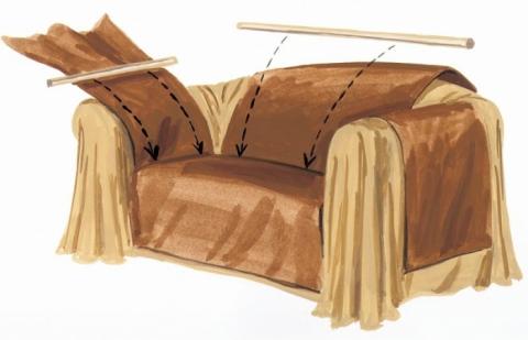 Как вариант для классического интерьера можно сшить вот такое чудесное двухслойное покрывало на диван своими руками. Шьется оно довольно просто, согласно схеме.