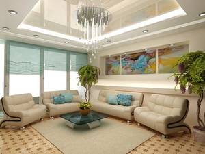 Но если потолок в гостиной высокий, тогда рационально удлинить шнур, чтобы люстра была зафиксирована на высоте 2,5-3 м. от пола. Такое освещение не будет ослеплять, а, наоборот, получится полноценным. Для этого следует внимательно подойти к сочетанию потолка и люстры.