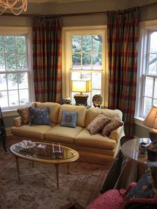 В силу того, что окна в новых квартирах в основном выполнены из белого пластика, количество возможных стилей уменьшается, и ограничивается такими как модерн, минимализм или эклектика. Очень важно подобрать шторы и гардины для того, чтобы дизайн гостиной с эркером обрел завершенный и гармоничный вид.