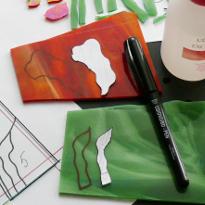Аккуратно обведите периметр стекла на чистой бумаге, а в карандашную рамку тонким грифелем впишите рисунок, но и черным маркером это тоже можно сделать, только толстым.