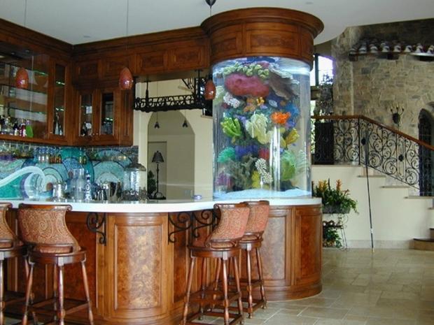 Аквариум-башня в интерьере