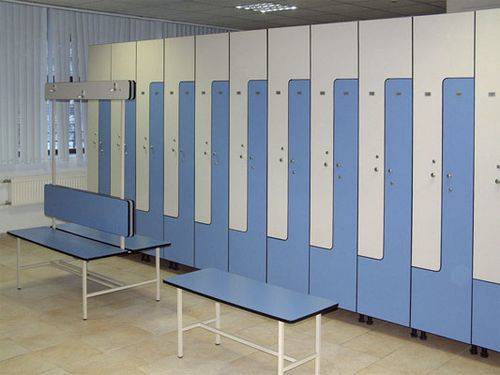 Если на предприятии есть гардероб, то шкафчик в нем делиться на два отделения. В одной части сохраняется белье и легкая одежда, а во второй - верхняя одежда. Когда вид шкафов уже точно определен, пришло время замерять размеры помещения, продумывать расположение шкафов. Например оптимальным вариантом будет под длинные стены поставить шкафы, а в проходе - скамьи, чтобы было более удобно переобуваться. Раздевалка получается очень удобной, даже при небольшой площади есть возможность поставить много шкафов.