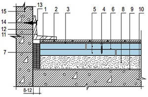 Не стоит также забывать, что конструкции пола не должны иметь жесткой связи со стенами. Прокладка, поз.10 на рис.5, как раз и служит этой цели.