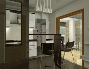 Также одну из боковых сторон можно заменить барной стойкой, при таком дизайне раздвижные панели не будут нужны совсем. П-образная планировка подходит для больших квартир. В маленьких же помещениях наилучшим образом подойдет угловое размещение мебели. Мойку можно разместить в углу, тем самым увеличится рабочее пространство. При такой расстановки мебели иногда может возникнуть такая проблема, как отдаленность мойки от стояка.