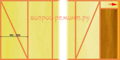 - Если угловой/прилежащий пролет получается 300 мм или меньше, но такой ситуации следует избегать, располагая двери/окна на достаточном расстоянии от углов.