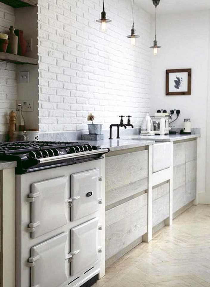 Ответ опять простой — для любых, так как кирпич свободно адаптируется к кухням различного дизайна. Хотите ли Вы иметь кухню в стиле загородного коттеджа, в деревенском, романтический или современном стилях, Вы найдёте приемлемое решение. Кирпич достаточно универсален, чтобы выбрать правильный цвет, текстуру и мебель на кухню, которые будут отлично сочетаться.