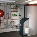 Система отопления на основе электрического котла представляет собой практически ту же схему, что используется и при «классическом» водяном отоплении. Жидкий теплоноситель нагревается теплоэлектронагревателями (ТЭНами) и направляется по трубам к приборам отопления. Котел может быть однофазным (рассчитанным на напряжение 220В) или трехфазным (380В). Теплообменник котла состоит из бака и укрепленных в нем ТЭНов.