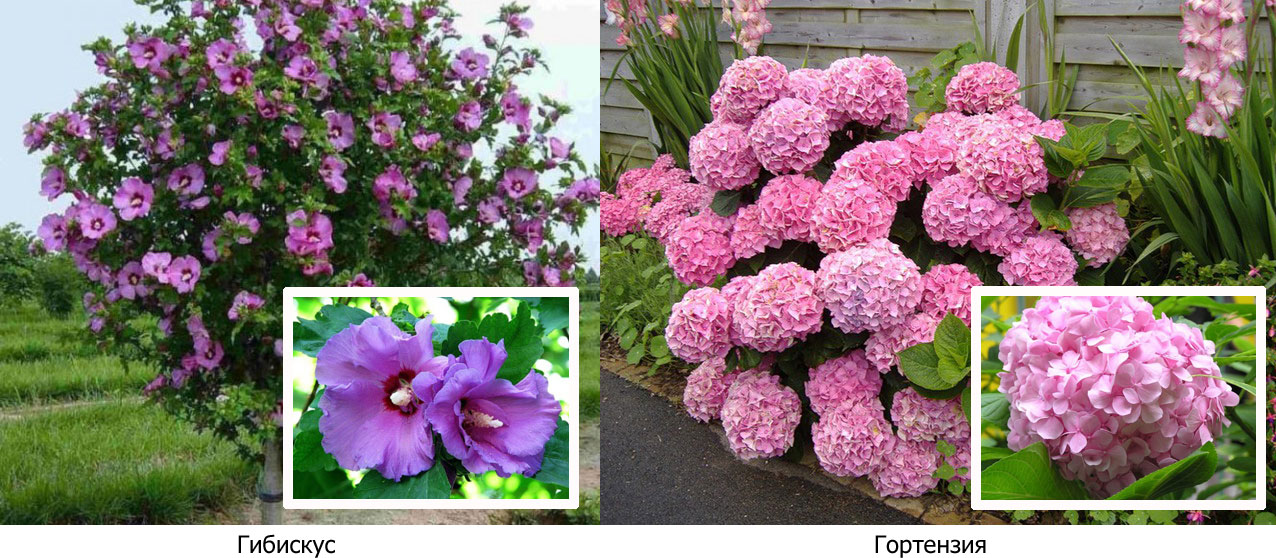 Все эти растения со временем разрастаются, поэтому их необходимо сажать на определенном расстоянии друг от друга. Каждый год нужно проводить обрезку кустарников; это делается для того, чтобы, во-первых, сформировать растение, во-вторых, продлить время его цветения.