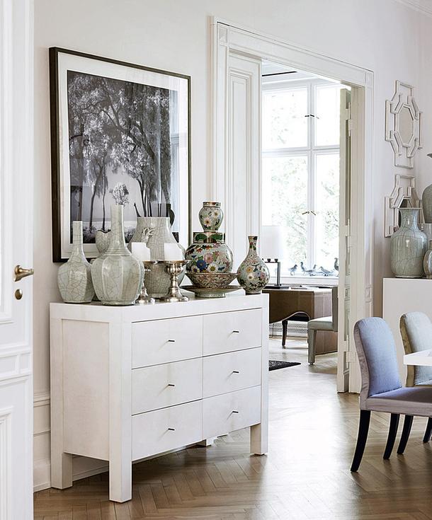 Для большой квартиры требуются особые архитектурные пропорции: анфиладная планировка и высокая филенчатая дверь, лепнина на потолке или стенах. Все это уравновешивает четное число, даже крайности отличаются своей консервативностью по отношению к тому, сколько стоит предметов.