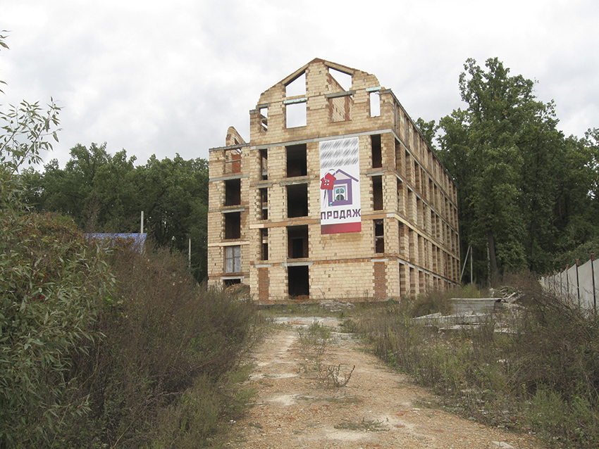 Есть так же более тяжелые случаи, когда строительство и вовсе приостанавливается, и даже в Ирпене, старейшем в Украине рынке частной застройки, такие примеры имеются.