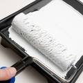 - Красим плитку валиком, но если на изделиях есть рельефный рисунок, то придется пользоваться только кистью. Наносить краситель следует в два-три слоя. Особо аккуратно нужно прокрашивать плинтуса, чтобы не испачкать обои.