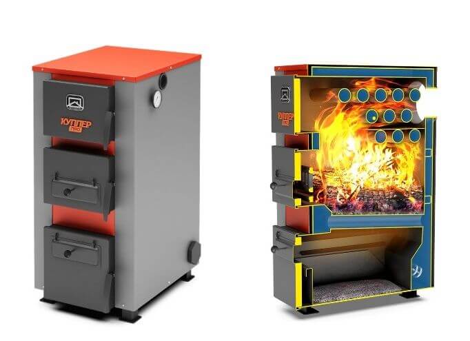 Котлы модельного ряда «Куппер» изготавливаются из конструкционной стали толщиной до 3 мм. Боковые поверхности котла теплоизолированы базальтовым картоном и облицованы декоративными панелями, что обеспечивает более высокий КПД и безопасную температуру наружных поверхностей.