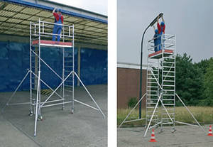 Если вышка будет иметь несколько настилов, расположенных на разной высоте, то это универсальный вариант, который позволит производить работы одновременно на разных высотах. В каком случае можно сэкономить на приобретение дополнительной вышки и быстро производить работы. Эти конструкции могут выдерживать нагрузку до 250 килограмм на квадратный метр, а время сборки не занимает более 20 минут.