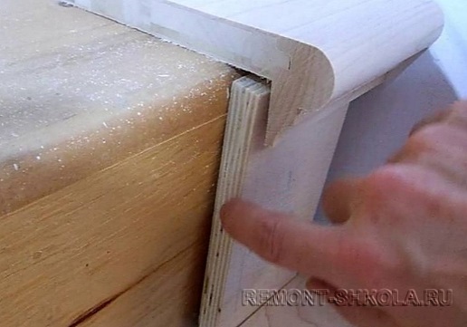 Путём практических замеров была подобрана рейка с необходимой толщиной, опять же в целях придания вертикального положения боковой лестничной накладке.