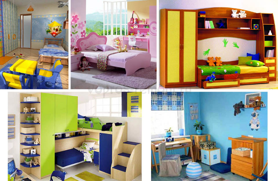 Здесь на рисунке приведены типичные ошибки при оформлении детской. В верхнем ряду – непростительные; в нижнем – не фатальные, но существенные.
