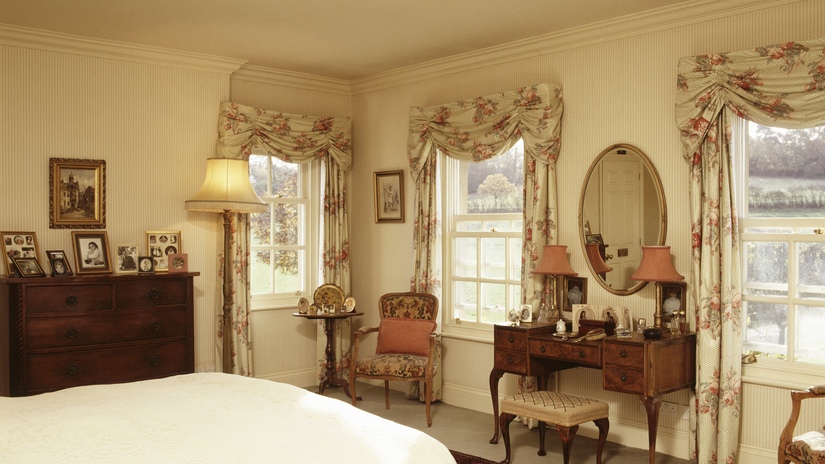 Неотъемлемыми атрибутами стиля ампир являются настенная живопись, зеркала, статуэтки и мозаичные элементы. Если спальня будет оформлена в белой цветовой гамме, подчеркнут ее великолепие большие вазы с рисунками. Шелковые и атласные гардины, изумительные ламбрекены, колоны и пилястры отлично впишутся в интерьер спальни.