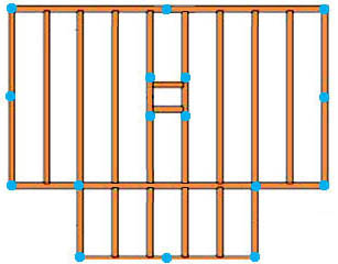 - В центре здания должна быть свая; раз там будет печка, ставим куст из 4 свай, итого 12.