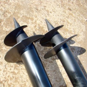 Сваи такой же конструкции благодаря невысокому ребру винта используются как бурозабивные, см. в конце. Для возможности бетонирования грунт из их стволов в таком случае вынимают специальными буровыми инструментами – ложковым буром или желонкой. Технология трудоемкая, но дает возможность строить 3-5 этажные капитальные здания прямо на вечной мерзлоте, болотах и торфяниках.