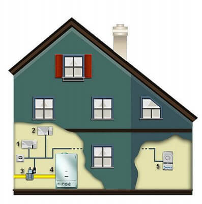 Принудительная, с помощью насоса, циркуляция теплоносителя в системе отопления позволяет устанавливать отопительный котел в доме на любой высоте от уровня земли.