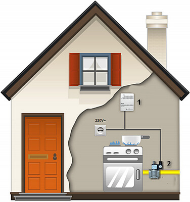 Датчики загазованности должны срабатывать при достижении концентрации газа в помещении, равной 10% НКПРП природного газа и содержании в воздухе СО более 20 мг/м3. Сигнализаторы загазованности должны управлять быстродействующими запорными клапанами, установленными на вводе газа в помещение и отключающими подачу газа по сигналу датчика загазованности.