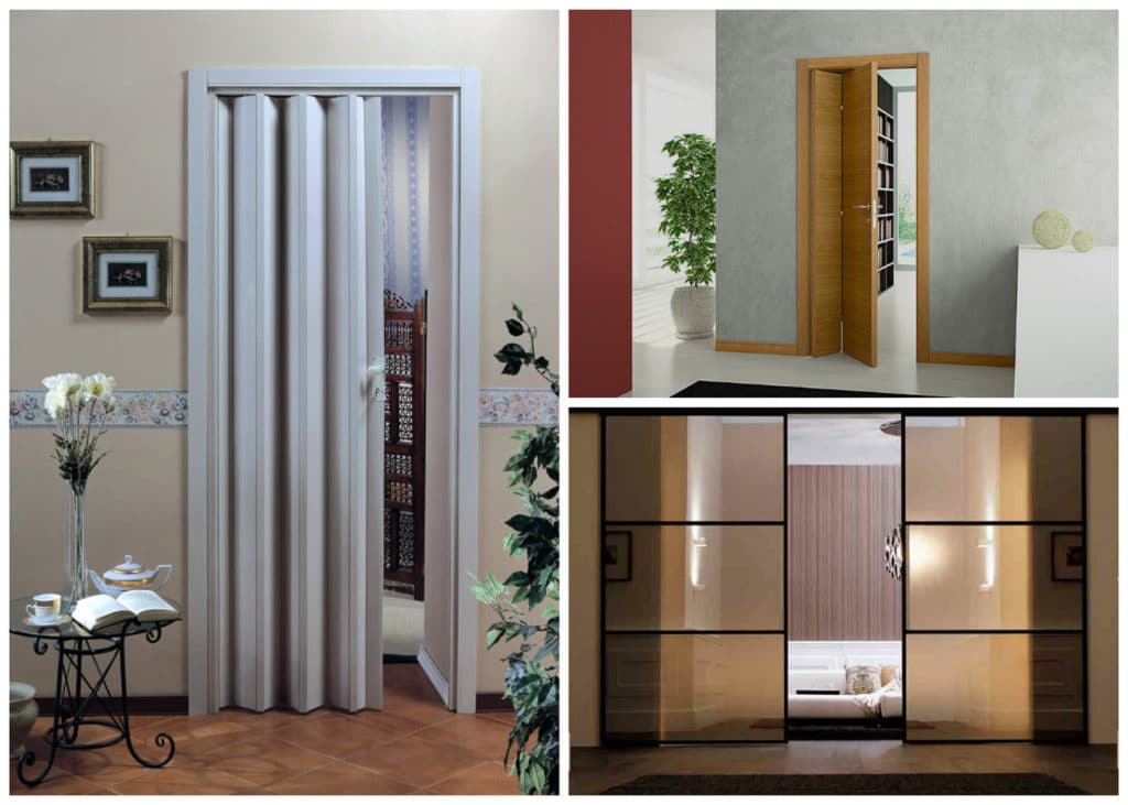 1. По материалу, из которого изготовлено полотно: стеклянные, деревянные (массив, МДФ), двери из ПВХ, металлопластиковые, комбинированные.
