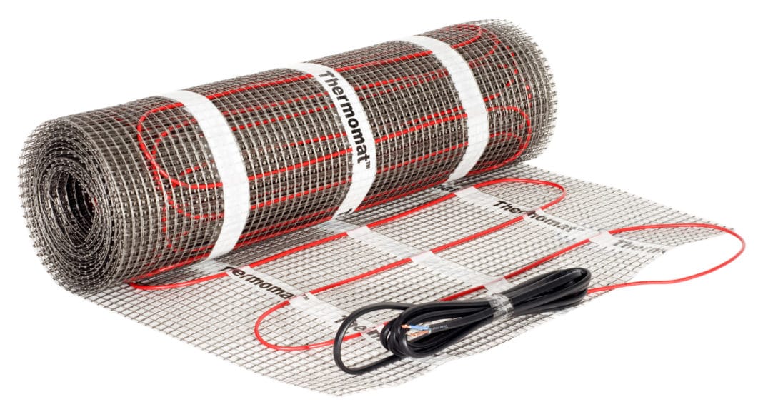 • нагревательный мат — полностью готовая к монтажу гибкая лента, с вплетенными жилами;