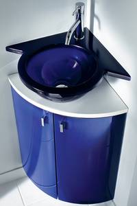- Внешние характеристики или дизайн. Согласитесь, вся мебель должна импонировать самой комнате и ванне. Если ванна имеет острые углы, тумба с резкой геометрической окантовкой будет смотреться вызывающе, поэтому углы тоже необходимо сделать либо округленными либо слега обрезанными, но без всяких геометрий. Кстати, что касается стилевой направленности. При классических нотках интерьера, вариант с классикой будет в самый раз. Если же дизайнер выбрал современное направление, то и тумба должна подходить под хай-тек.