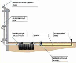 Приток воздуха в систему вентиляции канализационных сооружений осуществляется через вентиляционные трубы дренажа или воздухозаборник фильтрующего колодца.