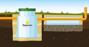 Септик «Евролос Эко» очищает воду на 75%. Обязательное условие эксплуатации — обустройство фильтрационного поля либо дренажной системы.