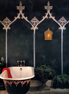 Причем зона принятия водных процедур всем телом отделена от основной площади внушительной аркой. Они тяжелые, массивные и скорее похожи на бассейн. Очень часто ванна отделена от основной зоны с помощью арочного проема или звенящими шторами, напоминающими дождь.