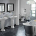 Открытая ванна красиво смотрится в больших помещениях, когда ей соответствует шикарная форма и исключительно красивые ножки.