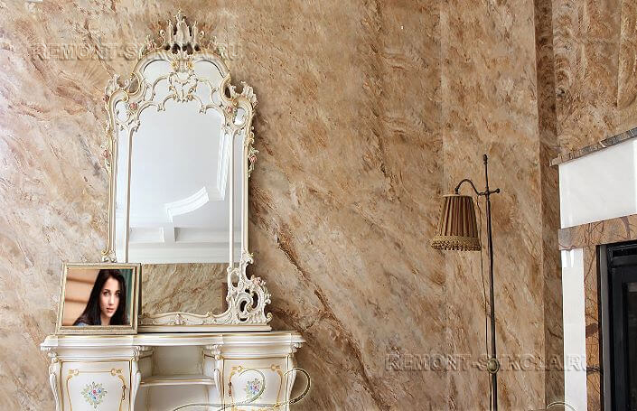 Имитация мрамора, наверно, самый популярный результат использования венецианки. А работа настоящего мастера не оставит равнодушным ни кого