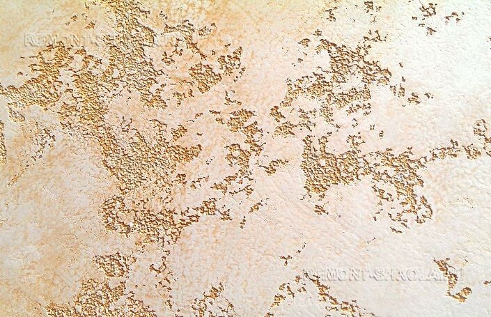 При нанесении на стены такой материал может напоминать натуральный природный камень или старый камень, дерево (кора дерева, кора дуба), бархат или шелк. Существуют материалы с эффектом кожи, шубы или с мозаики, придающие поверхности эффект дождя, имитация бетона — микроцемент, под старину и множество других.
