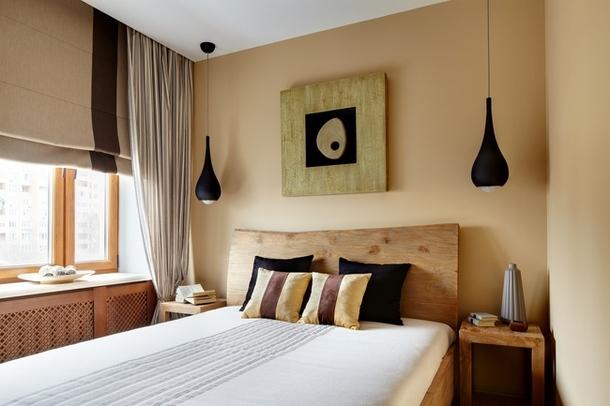 Кровать, сундук и прикроватные тумбочки в спальне хозяев доставлены курьерами фирмы Teak House. Светильники купили по случаю, в обычном магазине. Но они даже загадочно гармонируют с интерьером, внося свою лепту в освещение пространства.