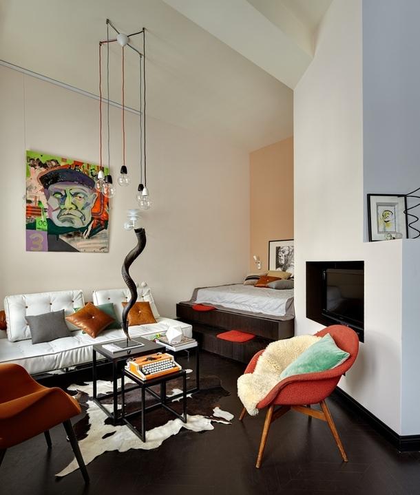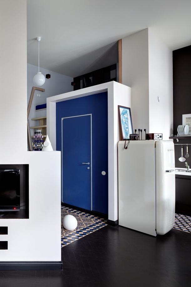 Эта квартира находится в старом доме, где друзья Киры выделили лаунж-зону над санузлом. "Там можно поваляться с книжкой или ноутбуком, а при необходимости уложить спать гостей”, – рассказывает дизайнер.