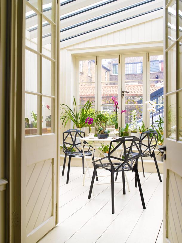 Оранжерея была пристроена к старому дому еще в XIX веке: вней разводили фрукты и продавали в местные ресторанчики. Макдоналды дополнили древнюю викторианскую конструкцию современными раздвижными дверями, при этом покрасив балки в фиолетовый цвет. Получилась чернильная крыша на фоне голубого неба.
