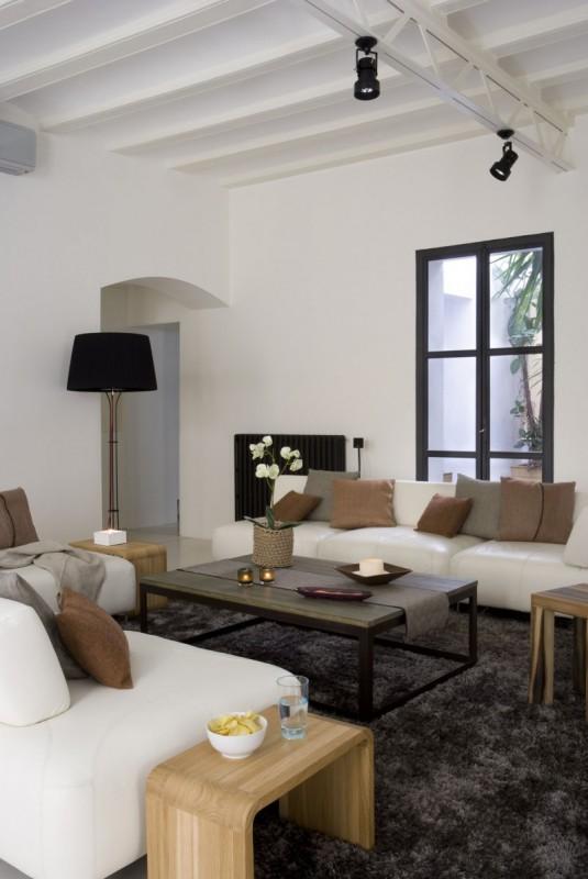 Все помещения квартиры между собой связаны большими арочными проемами, а также балконами, которые идут вдоль всего фасада. Особый стиль прослеживается в этом жилом помещении. Данный эффект достигается за счет многих деталей: каталонских традиционных потолков с деревянными балками, сводных арок во внешней стороне окон всех деревянных ставок, которые все равно очень заметны и играют весомую роль в дизайне всей квартиры. Здесь также хорошо смотрелись и более простые предметы интерьера. Например, если бы хозяева квартиры решили бы купить кровать чердак-м 85 http://happyhome-mebel.ru/detskaya-komnata/raduga-mebel/krovati-cherdaki-raduga/item/detskaya-krovat-cherdak-m-85, то и ей бы нашлось место в этом оригинальном интерьере.