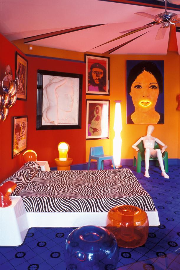 Для них важна провокация провокацией. Так что больше арт-объектов! Необычный интерьер спальни дизайнера Билла Паллота уже  украшают работы Роя Лихтенштейна. Полосатая зебра считается пошлостью 21 века, так что стоит ее убрать подальше или просто бросить на кровать.