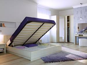 Кровати двуспальные с подъёмным механизмом позволяют разгрузить маленькое пространство от лишней мебели. Пространство, которое прячется под кроватью можно использовать совершенно по-разному, но в большинстве случаев его, конечно же, как уже упоминалось ранее, используют для хранения постельных принадлежностей.