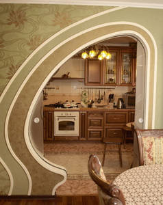 Благодаря богатому строительному рынку и широкому выбору стройматериалов немного вашей фантазии позволит преобразовать приевшуюся систему «наличник-дверь» в интереснейшие дизайнерские решения: арка в дверной проем может обрасти пластиковыми панелями или декоративной лепниной.