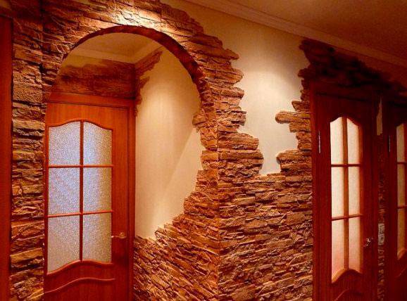 Искусственный камень в интерьере прихожей: имитация на грани фантастики