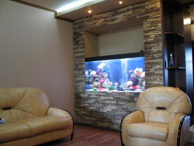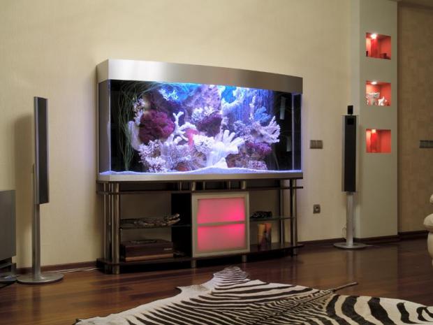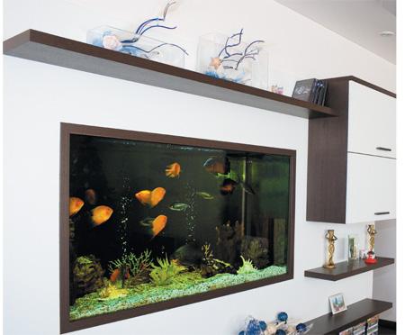 Широкий ассортимент уже готовых аквариумов, причем как отдельно стоящих, так и встроенных в предметы мебели, позволяет хозяевам интерьером планировать свой ремонт заранее.