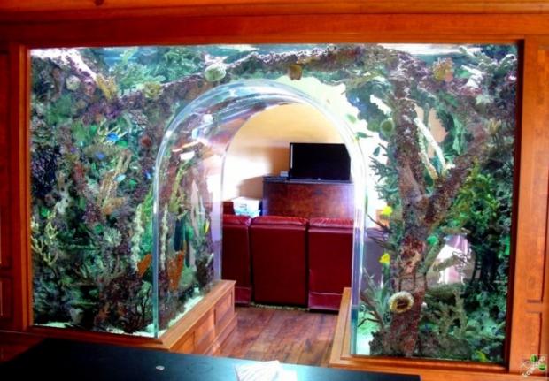 Современный аквариум 21 века – это не обычная банка, наполненная речной водой, где плавает рыбка времен развитого социализма, а целое сооружение, где присутствуют не только представители водной стихии, но и вполне уместные изюминки, такие, как водопады и искусственные гроты, в которых живут мелкие ракообразные существа. Красивые аквариумы в интерьере дома всегда притягивали к себе взгляд, более того, рядом с ними себя чувствуешь счастливым человеком.